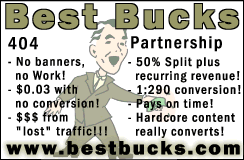 A general webmaster income program, including 404-error trapping. This is an adult content banner program, and is summarized in the link images below. Many free website hosts do not allow direct links to adult pages, so be sure to review your site content rules before using links from such a program. I use this one elsewhere.